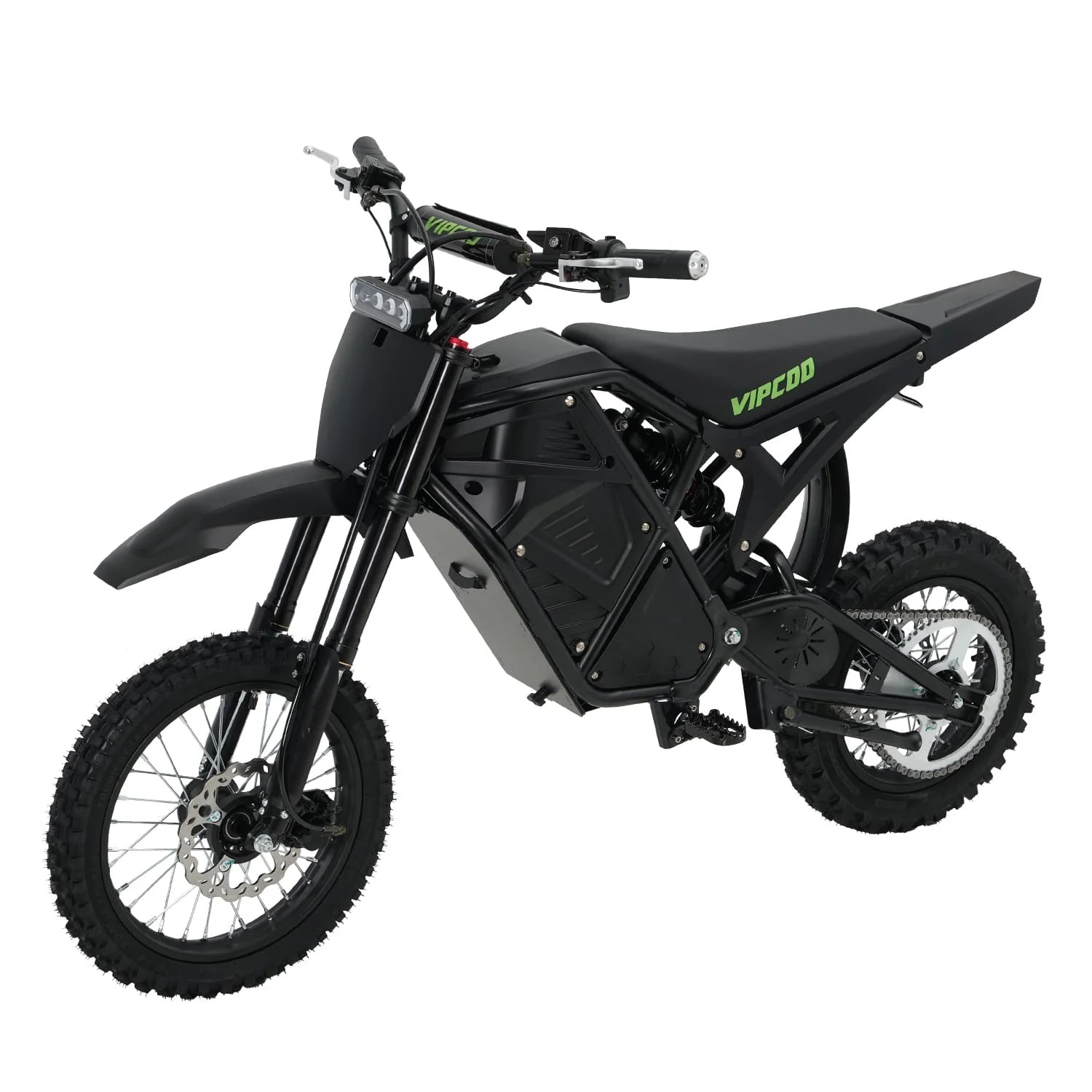 VIPCOO H3 Electric Dirt Bike, 23AH removable battery, 3500W mid-drive motor, 14-inch front and 12-inch rear off-road tires—effortlessly handles both urban streets and wilderness terrain.